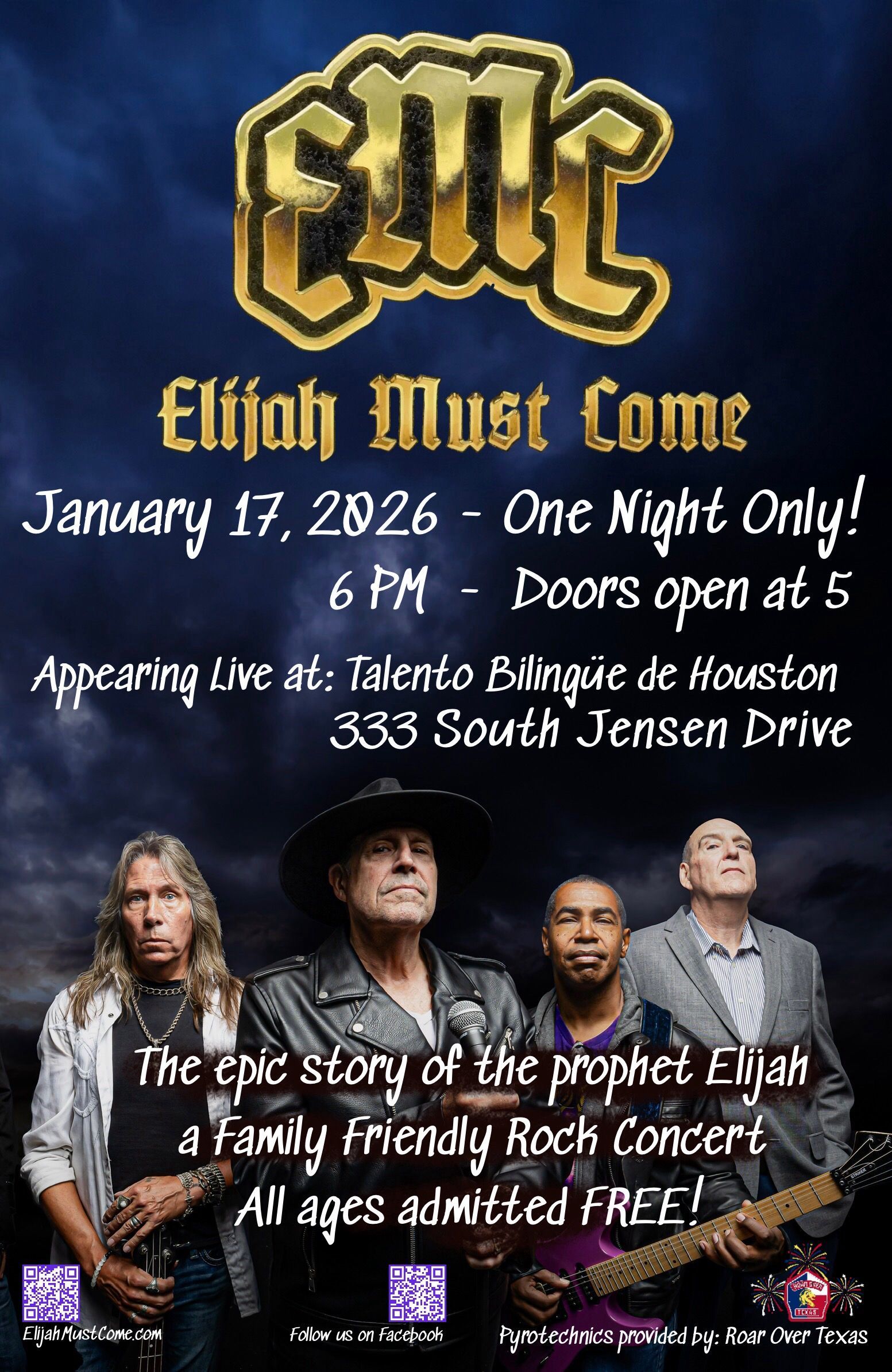Discover Elijah Must Come, a Houston area progressive rock band. Our goal with this first project is to introduce the listener to one of the most thrilling stories ever told, the true story of Elijah the Old Testament prophet. We hope the amazing life of this man will have a positive impact on you and you'll be encouraged and inspired to stand strong in the face of tyranny in the "Spirit of Elijah" in these perilous times we find ourselves in.